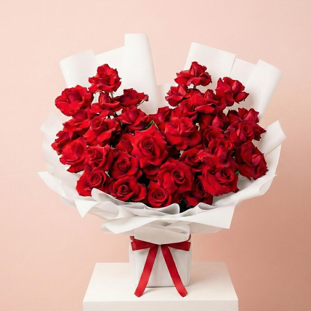 Red Rose 55 — The Romance Bouquet Luxury 55 Red Roses Bouquet | Elegant Valentine Romantic Flower Arrangement Make a timeless romantic statement with Red Rose 55 — The Romance Bouquet, a luxurious arrangement of 55 premium red roses, beautifully hand-arranged to create a full, lush, and elegant presentation that speaks the language of love. Each rose is carefully selected for its rich red hue, velvety petals, and naturally full bloom appearance, symbolizing passion, devotion, and deep emotional connection. Designed by expert florists, this bouquet offers a perfectly balanced look — grand yet refined — making it ideal for meaningful romantic moments. Wrapped in premium elegant wrapping and finished with a satin ribbon, this bouquet is perfect for Valentine’s Day, anniversaries, proposals, romantic surprises, birthdays, and special celebrations. Whether you’re expressing heartfelt emotions or planning a memorable gesture, 55 red roses convey love that is confident, passionate, and sincere. Our florists follow professional hydration and handling techniques to ensure long-lasting freshness and visual impact upon delivery. This bouquet is ideal for romantic dinners, hotel surprises, or gifting someone who appreciates classic luxury. ✨ Why choose Red Rose 55 — The Romance Bouquet? • 55 premium red roses with rich color and fullness • Luxurious, elegant presentation • Hand-arranged by professional florists • Long-lasting freshness with expert care • Perfect for Valentine’s Day and romantic occasions 🎁 Customization Available: Add chocolates, heart balloons, or a personalized message card to elevate your gift. If you’re searching for a 55 red rose bouquet, luxury red roses for Valentine’s Day, or a romantic flower delivery, Red Rose 55 — The Romance Bouquet is a timeless choice that never goes out of style.