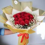 Red rose - 28 pcs Gypsophila - 5 pcs