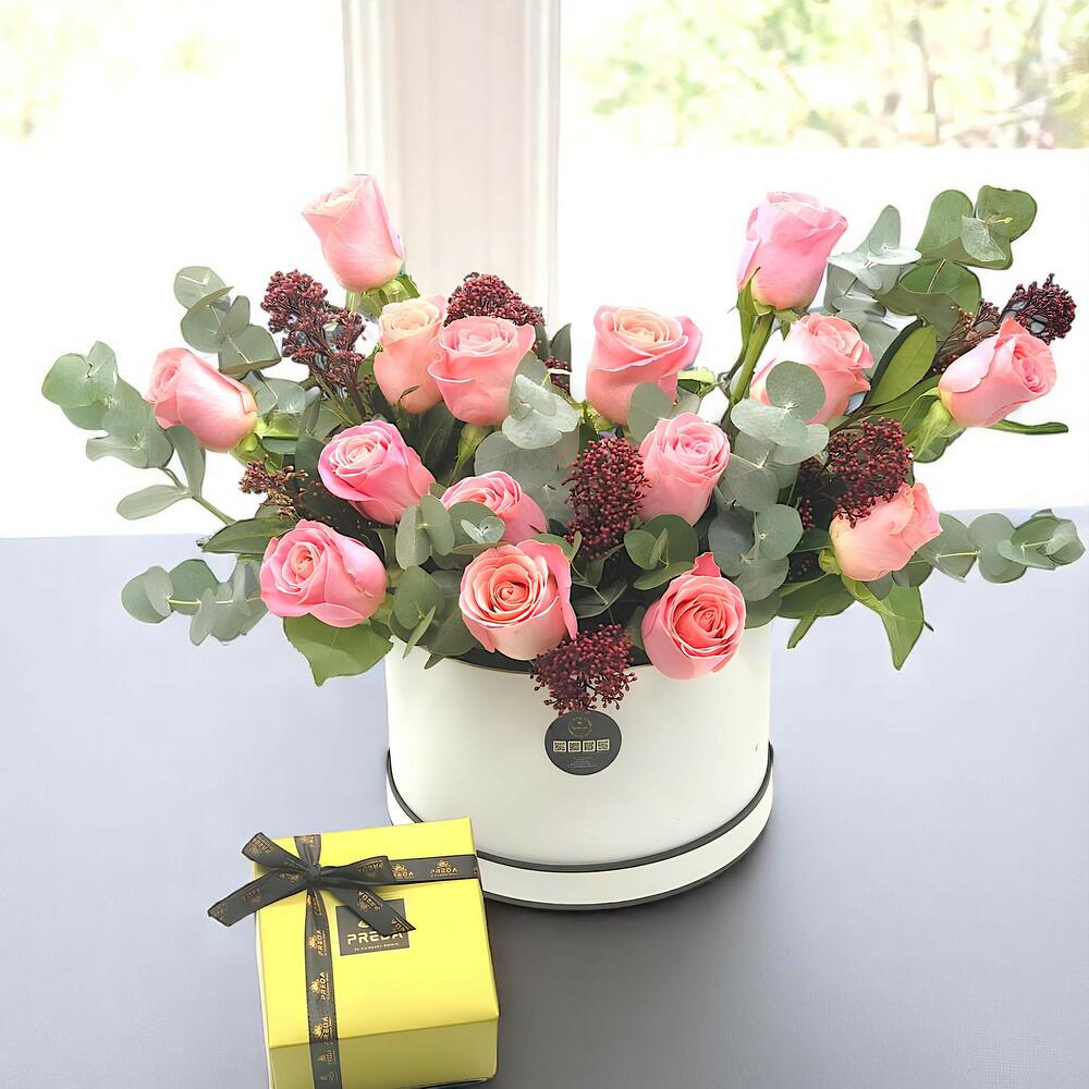 Pink Rose Box with Chocolate Box