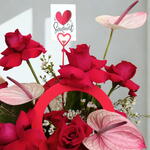 Red Rose Pink Anthurium Flower Bag Arrangement