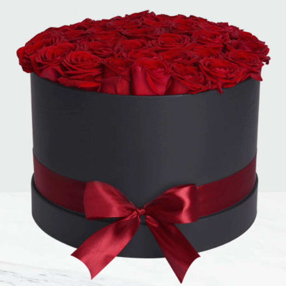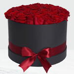 Red Roses in round Black Box