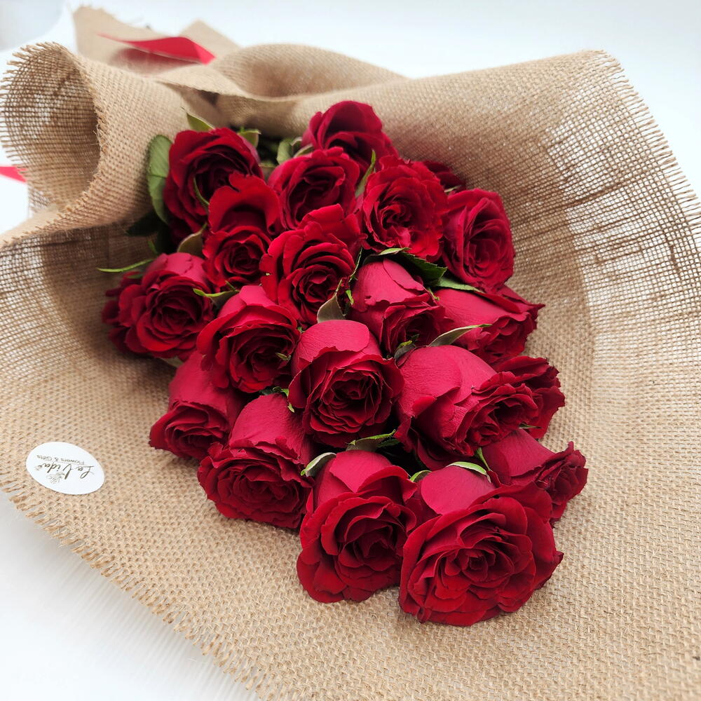 Savor the special moments with this stunning bouquet composed of 20 elegant red roses, beautifully wrapped in 2 pieces of natural jute roll. Perfect for expressing love, passion, and romance, this bouquet will surely captivate anyones heart! Share an unforgettable surprise today. Valentine flowers UAE Valentine bouquet Dubai Valentine flower delivery UAE Valentine roses Dubai Valentine gifts UAE Valentine flower delivery Abu Dhabi Same day Valentine flowers UAE