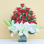 Red Roses And Lilies Vase