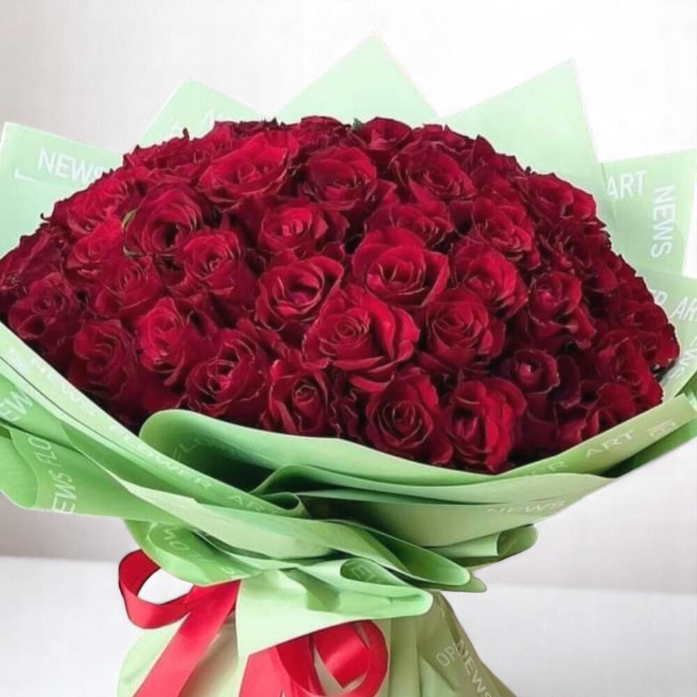 This luxurious bouquet of deep red roses is the ultimate symbol of love and passion. Carefully arranged and wrapped in elegant mint-green paper, it makes a grand statement for romantic occasions like anniversaries, proposals, or Valentine’s Day. The rich color and fullness of the bouquet captivate with timeless beauty and sophistication. To keep the bouquet fresh longer, place it in clean water, cut the stems diagonally every two days, and change the water regularly. Avoid placing the bouquet near heat sources or direct sunlight.