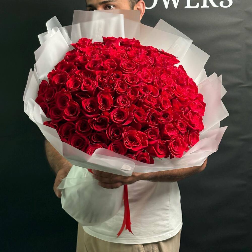 ❤️ A Hundred Ways to Say “I Love You” ❤️ Make a bold, unforgettable gesture with our luxurious bouquet of 100 premium red roses — the ultimate symbol of passion, romance, and timeless love. Whether it’s an anniversary, birthday, or just because, this bouquet speaks louder than words. 💐 Wrapped with elegance, delivered with love.