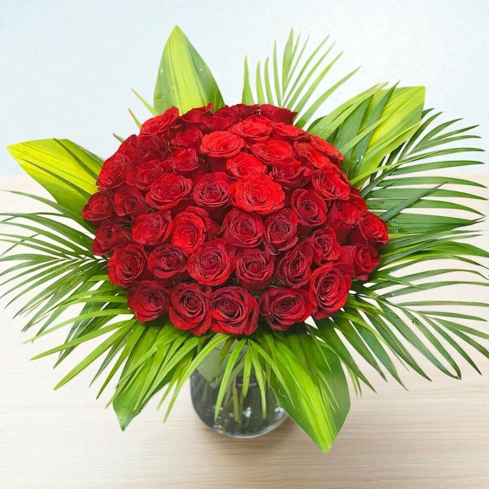 red roses - 51 pcs in a vase clinder - 1 pcs