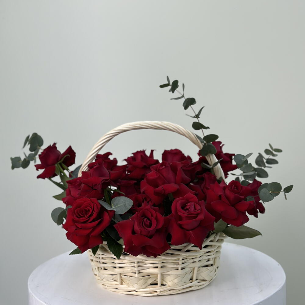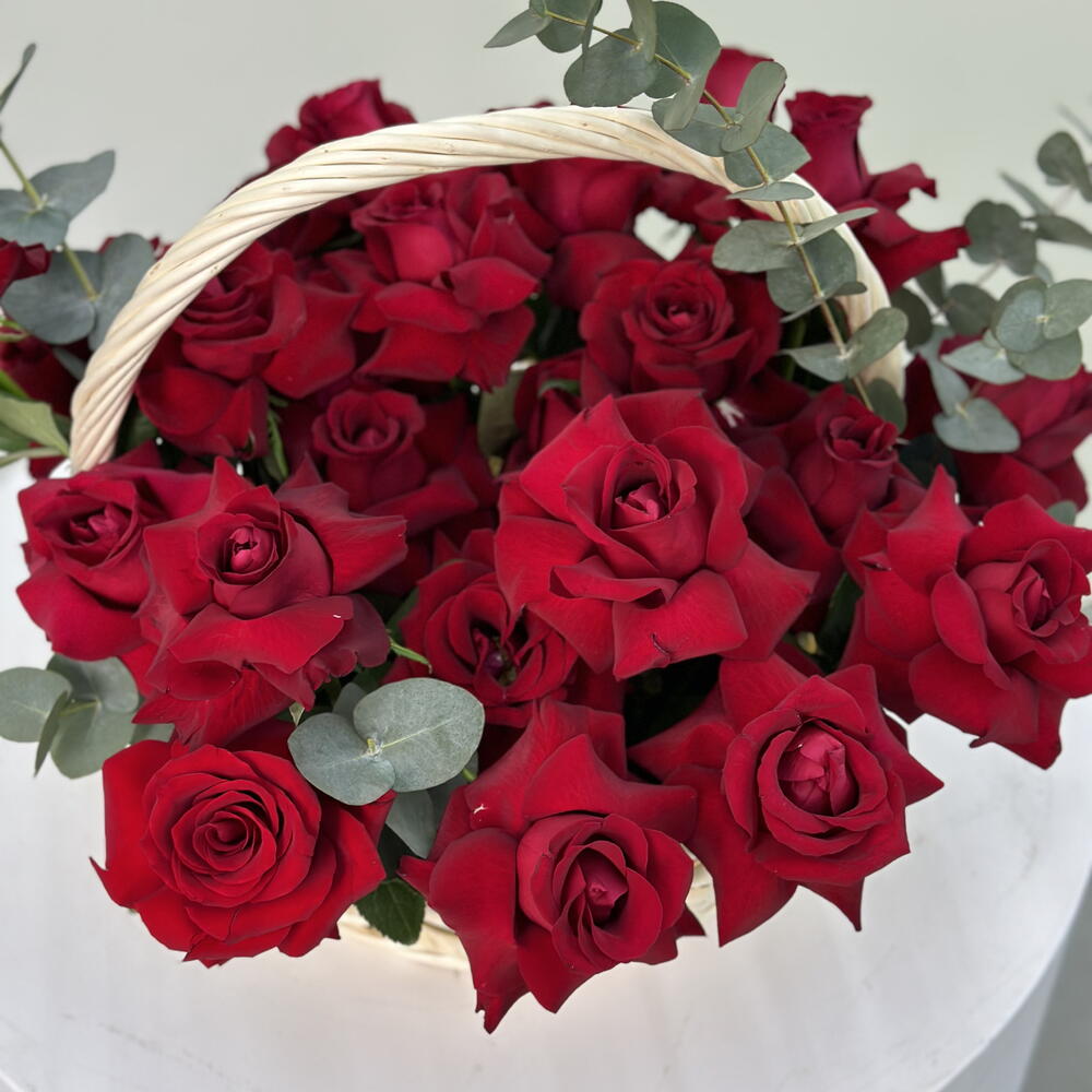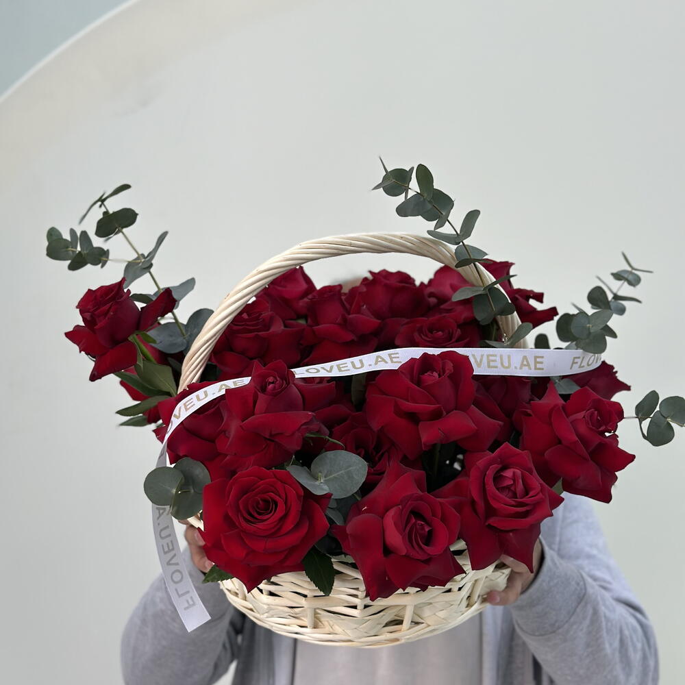 Red roses in basket
