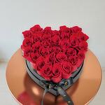 This vibrant red roses heart box evoke powerful emotions and evoke the essence of love, desire, respect, admiration, courage, sacrifice, and commitment.