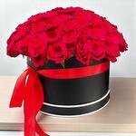 Elevate your gift-giving with our Red Roses in Round Box, a sophisticated floral arrangement that speaks volumes of love and admiration. Featuring 70 handpicked red roses arranged tightly in a sleek black hatbox adorned with a red satin ribbon, this luxurious presentation exudes timeless elegance and passion. The perfect centerpiece or romantic gift for anniversaries, Valentines Day, proposals, or heartfelt surprises. Care Tips: Place the box in a cool area, away from direct sunlight and drafts. Mist the roses lightly every day to maintain their freshness. Avoid watering the box directly—floral foam inside retains the necessary moisture.