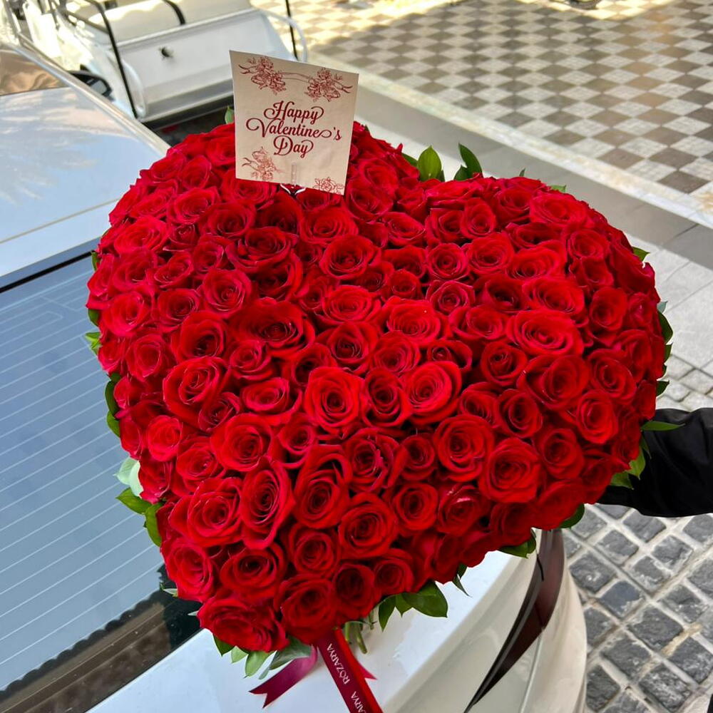 A breathtaking heart-shaped mono-arrangement of premium red roses for ultimate romance. Hand-crafted with architectural precision and finished with the signature Rozarya branded ribbon. The definitive luxury statement for expressing deepest love and timeless devotion. • Please Note: As flowers are natural products, actual colors may vary slightly from digital images due to seasonal growth and lighting conditions. We guarantee that the overall style and premium quality as well as freshness of your arrangement will always be maintained. • Please Note: As flowers are natural products, actual colors may vary slightly from digital images due to seasonal growth and lighting conditions. We guarantee that the overall style and premium quality as well as freshness of your arrangement will always be maintained.
