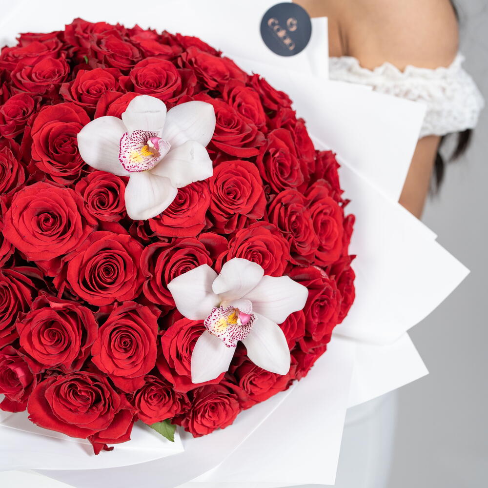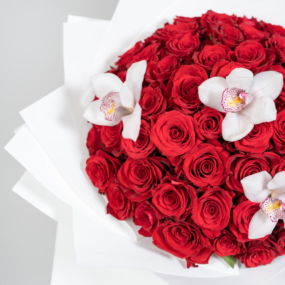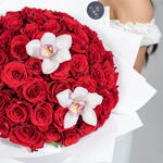 red roses - 71 pcs cymbidium white bloom - 3 pcs