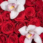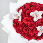 Red Roses with Cymbidium Orchid