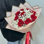 Discover the tenderness of this composition, where red roses are beautifully combined with white gypsophila. This bouquet is your opportunity to give warmth and elegance to those you appreciate.