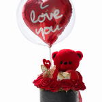 Teddy bear - 1 pcs nuttela - 3 pcs butterfly decor - 1 pcs bobo balloon - 1 pcs red roses - 10 pcs foil balloon - 1 pcs