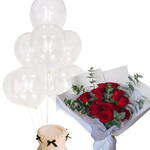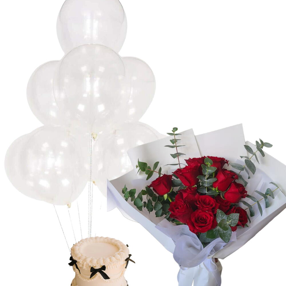 balloons - 8 pcs chocolate cake - 1 pcs roses bouquet - 1 pcs