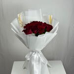 “Red Symphony” is a captivating expression of love — 25 bold red roses hand-wrapped in pure white and marble-textured paper. The contrast of fiery blooms against the serene wrapping evokes timeless romance and quiet luxury, perfect for heartfelt gestures and unforgettable moments.