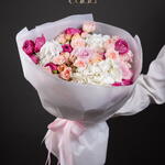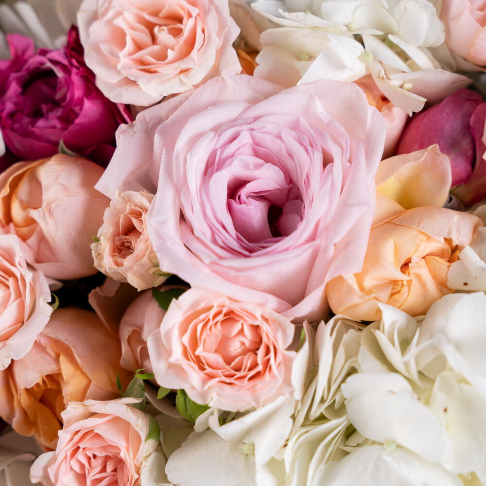 hydrangea white - 3 pcs ohara pink - 2 pcs sahara spray rose - 3 pcs julietta spray rose pink - 3 pcs spray rose julietta fushia - 4 pcs
