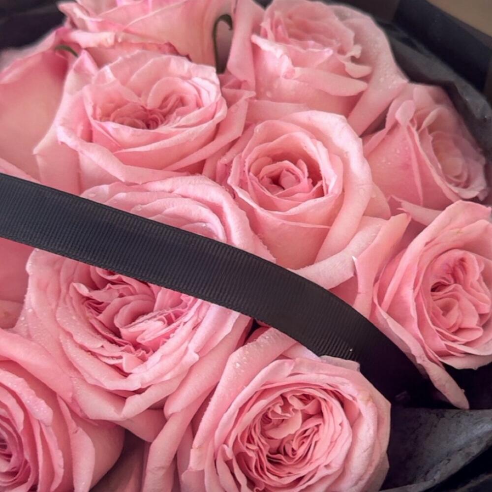 Elevate any moment with our Midnight Romance bouquet, featuring 11 fresh pink roses elegantly wrapped in black paper with a touch of sophistication. The delicate pink roses symbolize love, admiration, and appreciation, making this a perfect luxury gift for her, whether for girlfriend, wife, mother, sister, or special woman. Ideal for birthdays, anniversaries, Valentine’s Day, Mother’s Day, romantic surprises, engagements, weddings, congratulations, or special celebrations, this bouquet combines luxury, elegance, and style in every stem. Its contrasting black wrap adds a modern and dramatic touch, creating a visually striking floral arrangement that will make a lasting impression. Handcrafted by Majd Flowers, each bouquet uses premium fresh pink roses, creating a luxury floral gift, romantic gesture, or special surprise. Perfect as a birthday bouquet, anniversary flowers, Valentine’s gift, luxury gift for girlfriend or wife, or elegant bouquet for any special occasion.