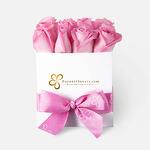 Product Details: Arrangement of 20 to 25 Pink Roses in white square box with 6 Pcs Ferrero Rocher Chocolate