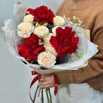 Romantic Bouquet of Red Roses and Cream Carnations-1902