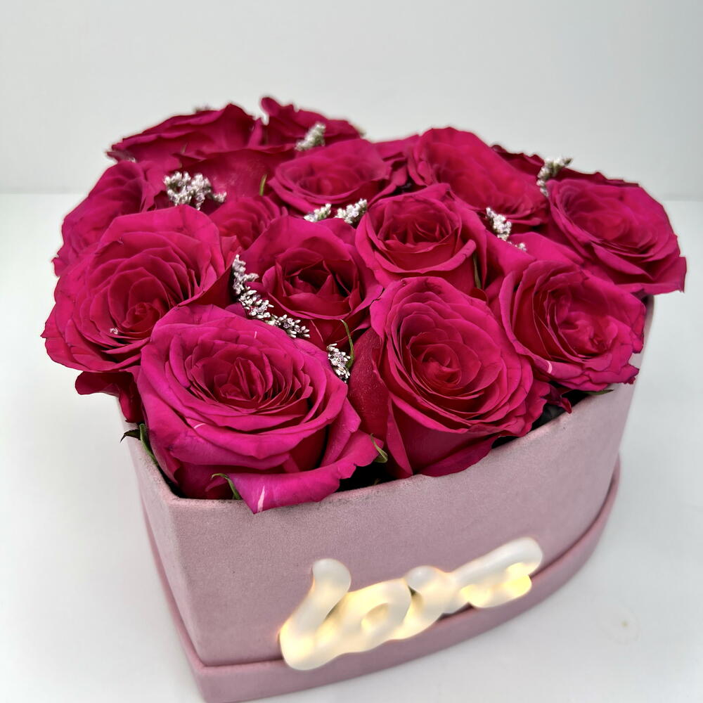 Experience the timeless elegance of 16 perfectly picked pink roses, meticulously arranged in an exquisite light box. This luxurious flower arrangement exudes love and appreciation, making it the perfect gift for a special occasion or just to brighten someones day. Each rose in the box is carefully selected to ensure the highest possible quality, resulting in a stunning display thats sure to impress. The light box not only showcases the beauty of these roses but also adds an elegant touch, capturing already gorgeous roses in the most beautiful light. A captivating blend of nature and design, this flower setup brings fresh and sophisticated charm to any space.