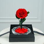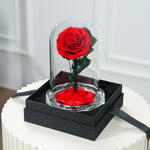 paper bag - 1 pcs dome vase - 1 pcs premium black box - 1 pcs red infinity rose stem - 1 pcs