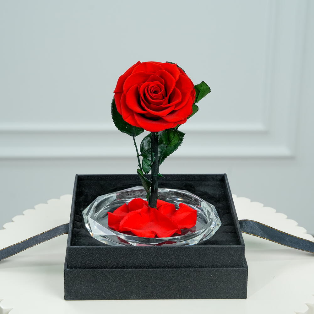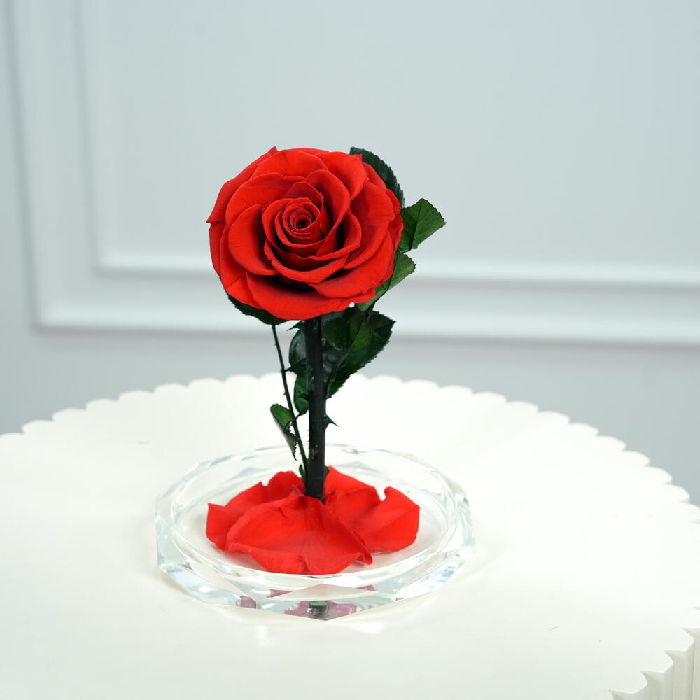 A luxury preserved flower gift that lasts a minimum of 2 years. Presented in a high-quality dome vase with a premium box and elegant paper bag. The perfect Valentine’s Day gift that lasts beyond the moment. ❤️