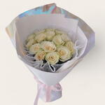 White rose - 15 pcs white wrapping paper - 6 pcs white fabric - 2 pcs