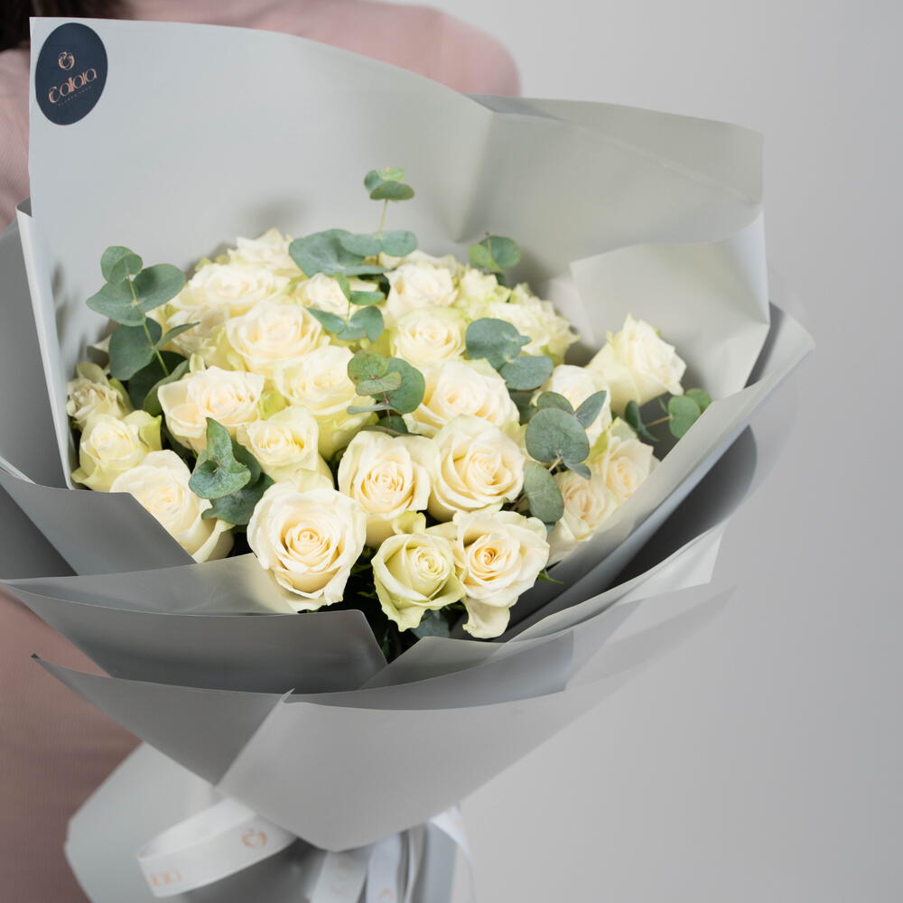 Eucalyptus - 2 pcs rose white athena - 30 pcs