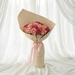 Celebrate the strength, beauty, and grace of every woman with the Rosé Charm Rose Bouquet, specially curated for Women’s Day. This elegant hand-tied arrangement features a harmonious blend of soft blush, pastel pink, and deep rose blooms, carefully selected to create a refined and romantic look. Wrapped in premium matte beige paper and finished with a delicate satin pink ribbon, this bouquet embodies sophistication and heartfelt appreciation. Its soft color palette and classic presentation make it a timeless gift that speaks with elegance and warmth. Perfect for expressing admiration, gratitude, and love, this bouquet is designed to leave a lasting impression