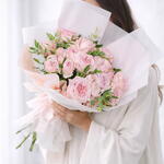 A beautiful pink bouquet with a white cover