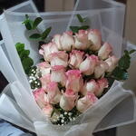 Pink ribbon - 1 pcs Gypsophila - 4 pcs eucalyptus leaves - 5 pcs wrapping sheets - 4 pcs pink roses - 21 pcs
