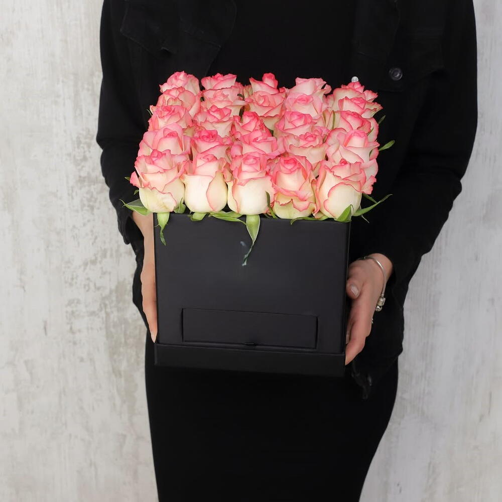 This elegant gift box features 25 soft pink-shade roses beautifully arranged to create a delicate, romantic ambiance. Nestled among the blooms are 16 Ferrero Rocher chocolates, adding a touch of golden luxury and irresistible sweetness. Perfectly curated, the combination of fresh roses and premium chocolates makes this arrangement ideal for expressing love, appreciation, or celebration. Its charming presentation and thoughtful blend of florals and treats create a memorable gift that delights the senses and leaves a lasting impression.