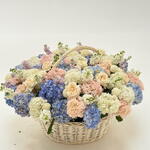 hydrangea white - 35 pcs hydrangea blue - 33 pcs ohara white - 25 pcs matiola pink - 15 pcs pingpong white - 15 pcs hydrengea pink - 25 pcs matiola white - 15 pcs