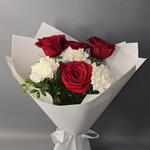 Pistachio - 1 pcs white carnations - 3 pcs red roses - 4 pcs