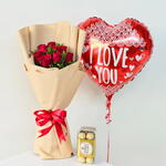 ferrero chocolates - 1 pcs red roses - 7 pcs iloveyou balloon - 1 pcs