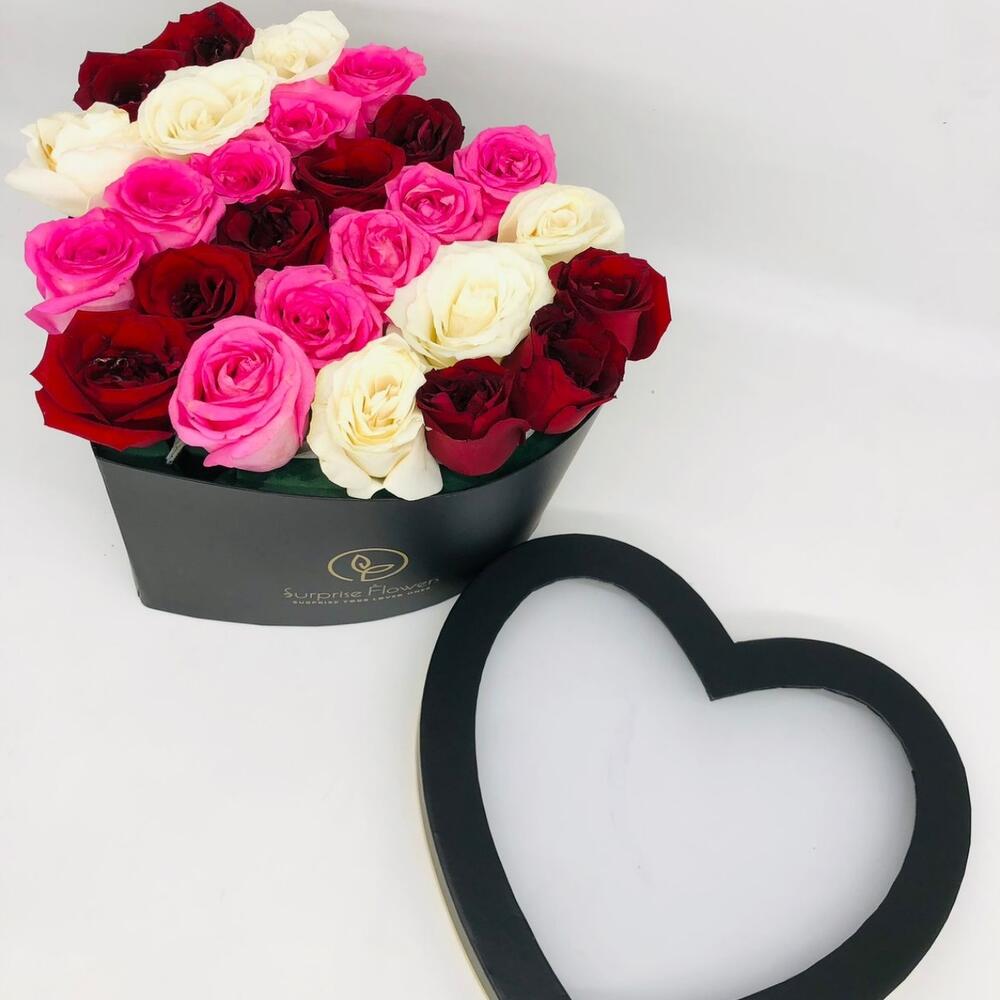 Roses in black heart box