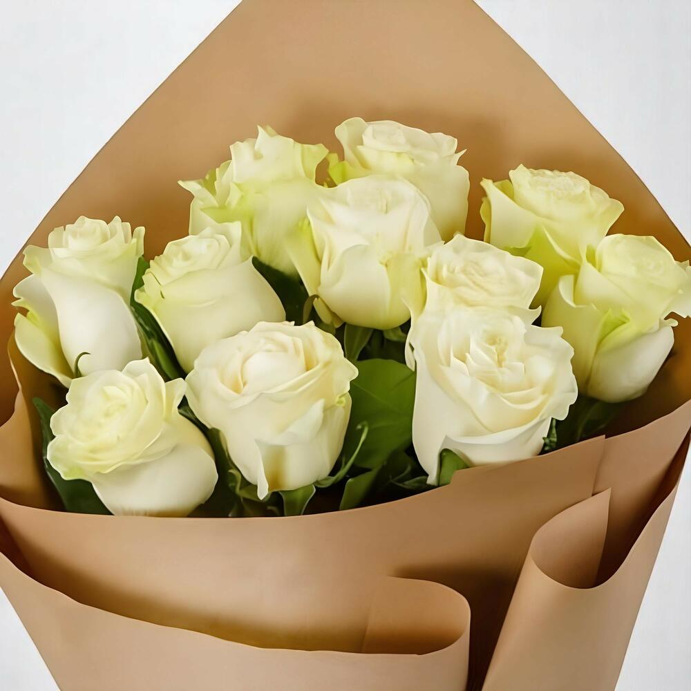 Ribbon - 1 pcs White rose - 11 pcs craft wrapping - 3 pcs