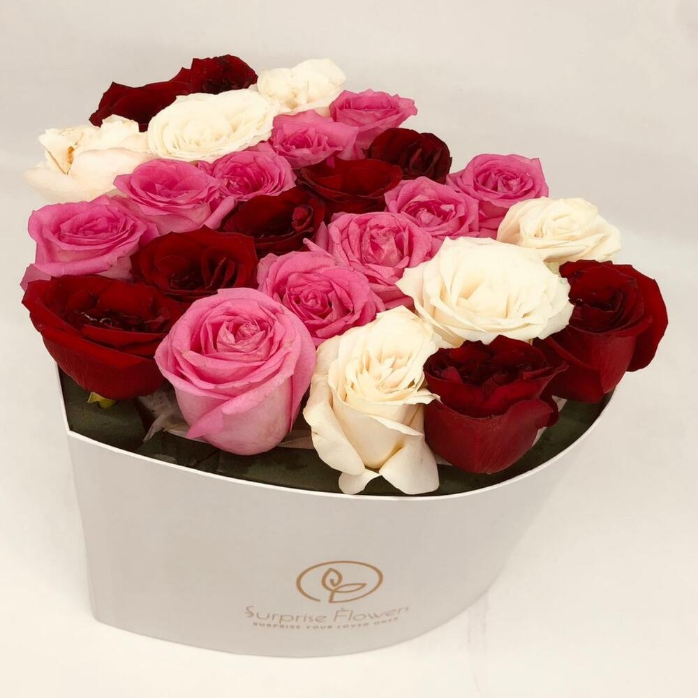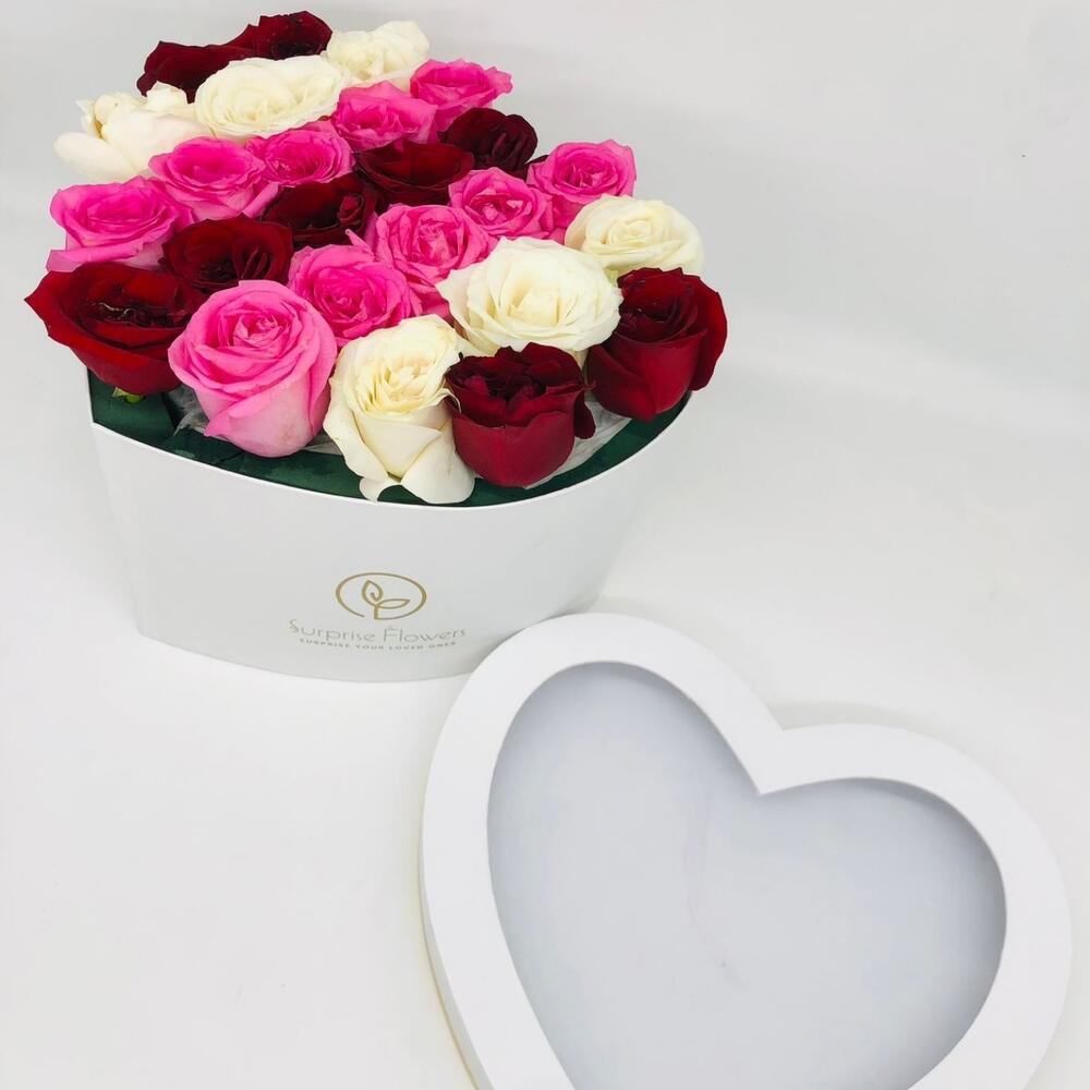 Roses in white heart box