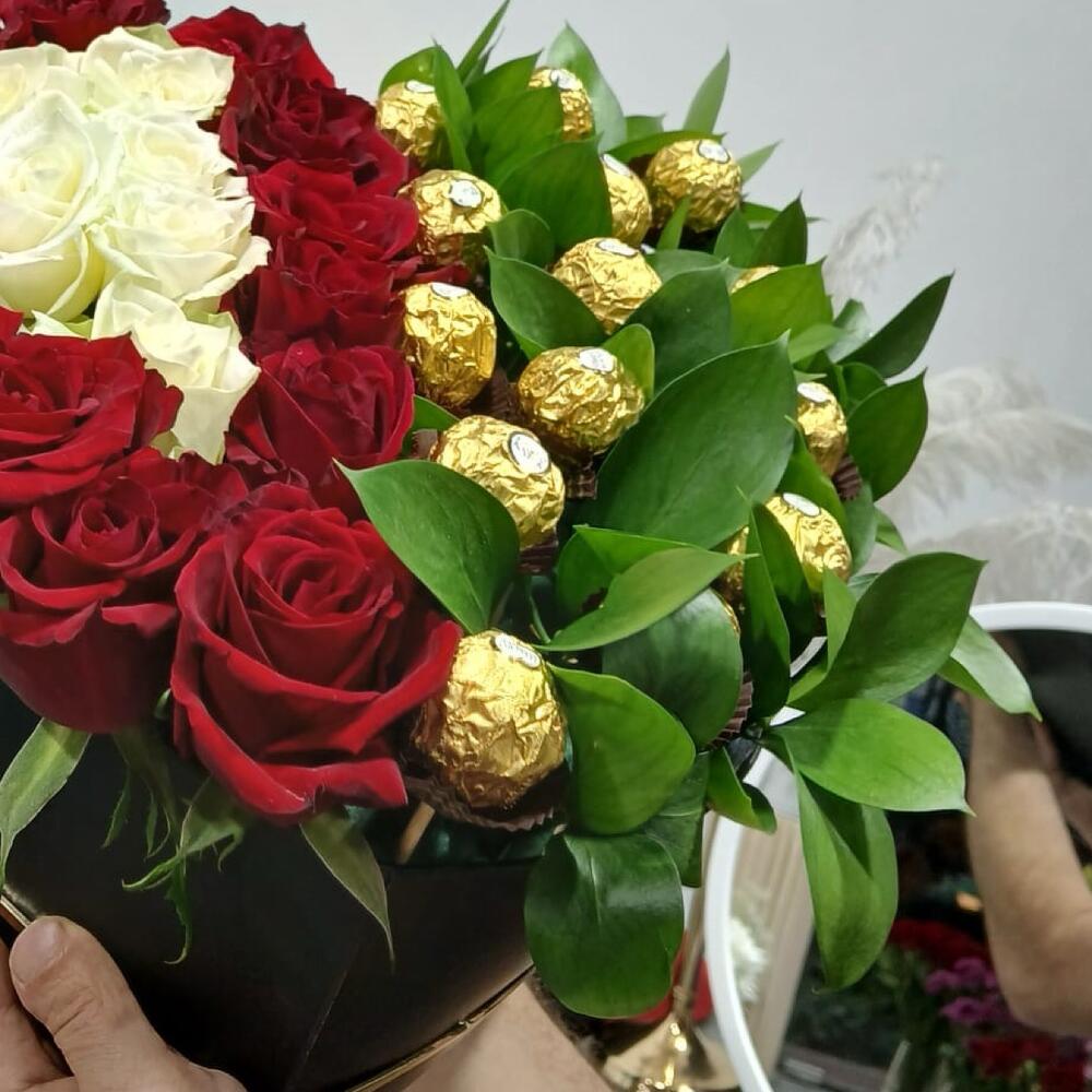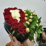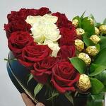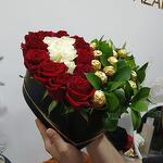 Red rose - 13 pcs White rose - 6 pcs Ferero roche - 14 pcs box heart - 1 pcs