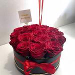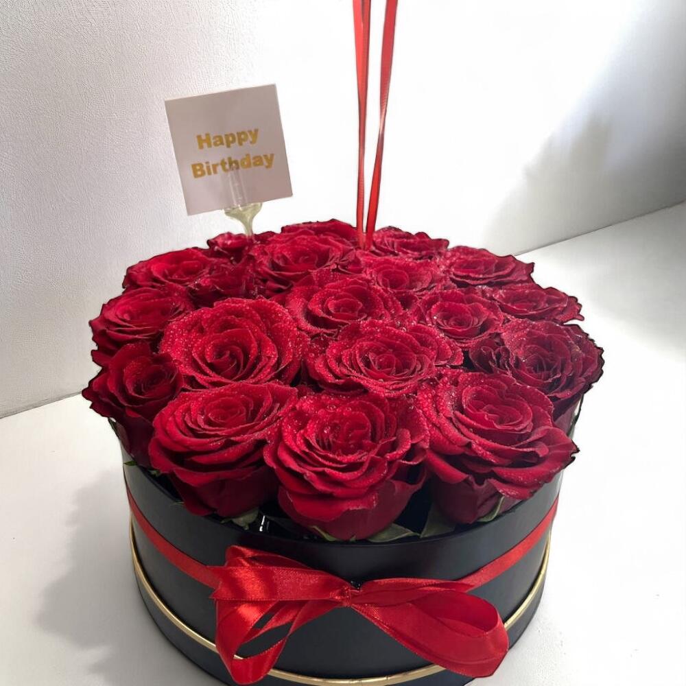 Celebrate with style and sweetness with our Elegant Red Rose Hatbox Arrangement. This luxurious round gift box features 35 stunning red roses, carefully arranged and tied with a vibrant red ribbon for a romantic and polished finish. Ideal for birthdays, anniversaries, Valentine’s Day, or a grand romantic gesture, this arrangement offers beauty and surprise — perfect for when words arent enough. Care Instructions: To maintain the freshness of your roses, keep the box in a cool spot away from direct sunlight and heat sources. Mist the flowers lightly with clean water once per day, focusing near the stem base, and avoid overwatering. Do not remove the roses from the box, as the floral foam inside keeps them hydrated. With simple daily care, this rose box will remain stunning and fragrant for up to a week or more.