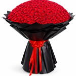 An awe-inspiring masterpiece of 500 vibrant red roses, beautifully wrapped in sleek black paper with elegant red ribbon accents. Perfect for grand celebrations, this bouquet symbolizes love, passion, and unforgettable moments