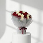 A timeless bouquet in rich red and soft white tones, combining classic roses in a bold yet elegant contrast. Romantic, luxurious, and eye-catching, this bouquet is perfect for anniversaries, Valentine’s Day, and meaningful celebrations. • Please Note: As flowers are natural products, actual colors may vary slightly from digital images due to seasonal growth and lighting conditions. We guarantee that the overall style and premium quality as well as freshness of your arrangement will always be maintained.