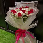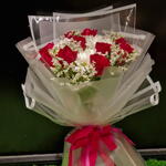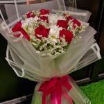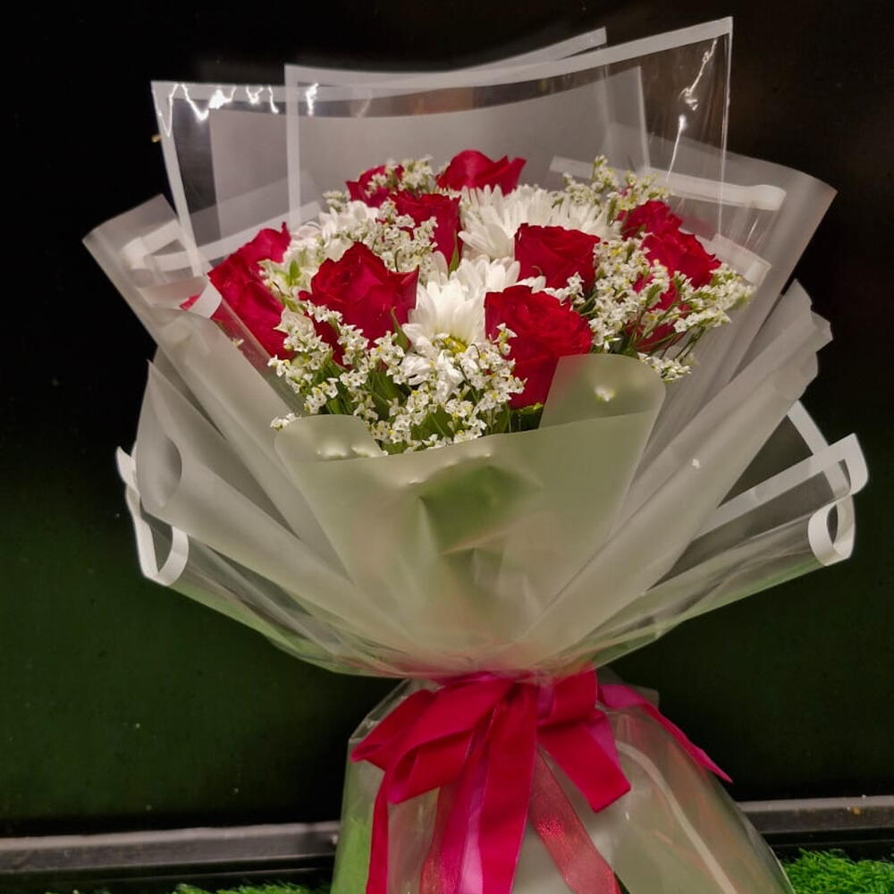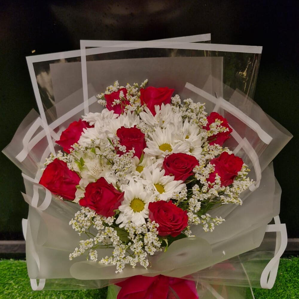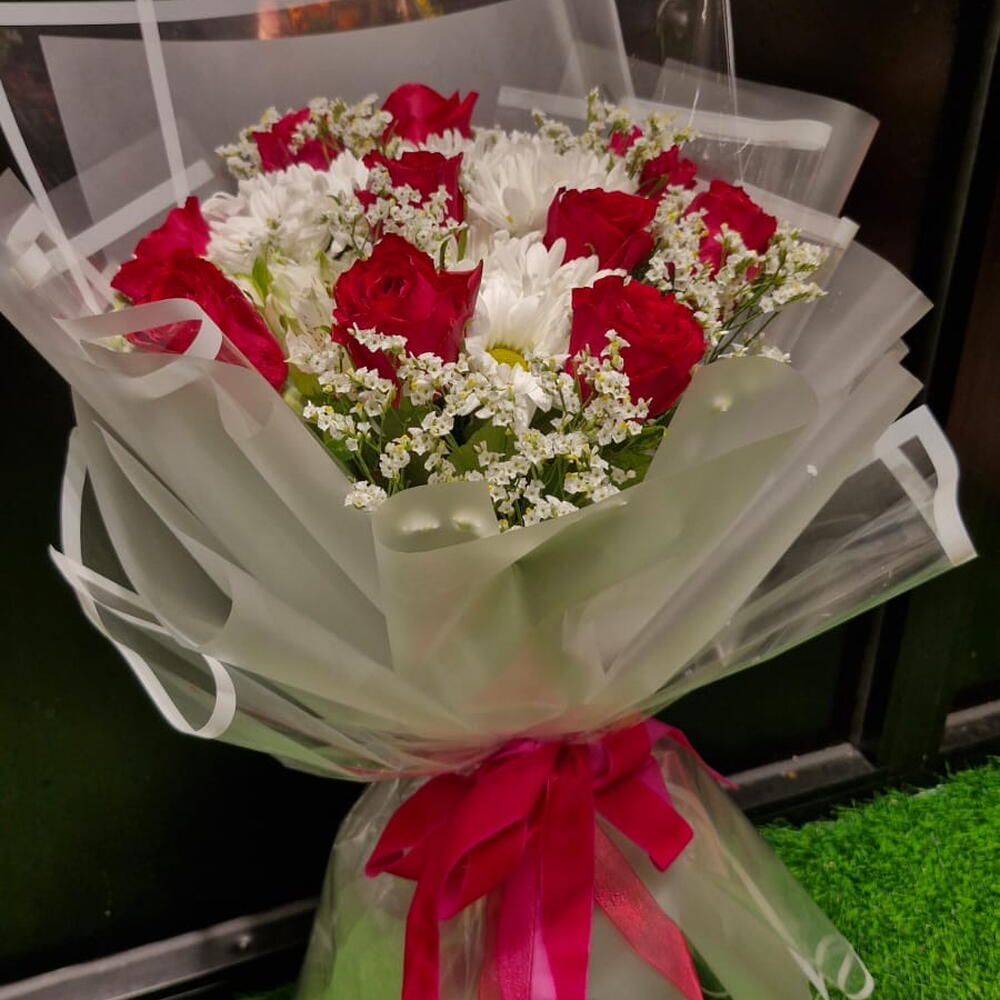 white chrysanthemum - 4 pcs red roses - 9 pcs