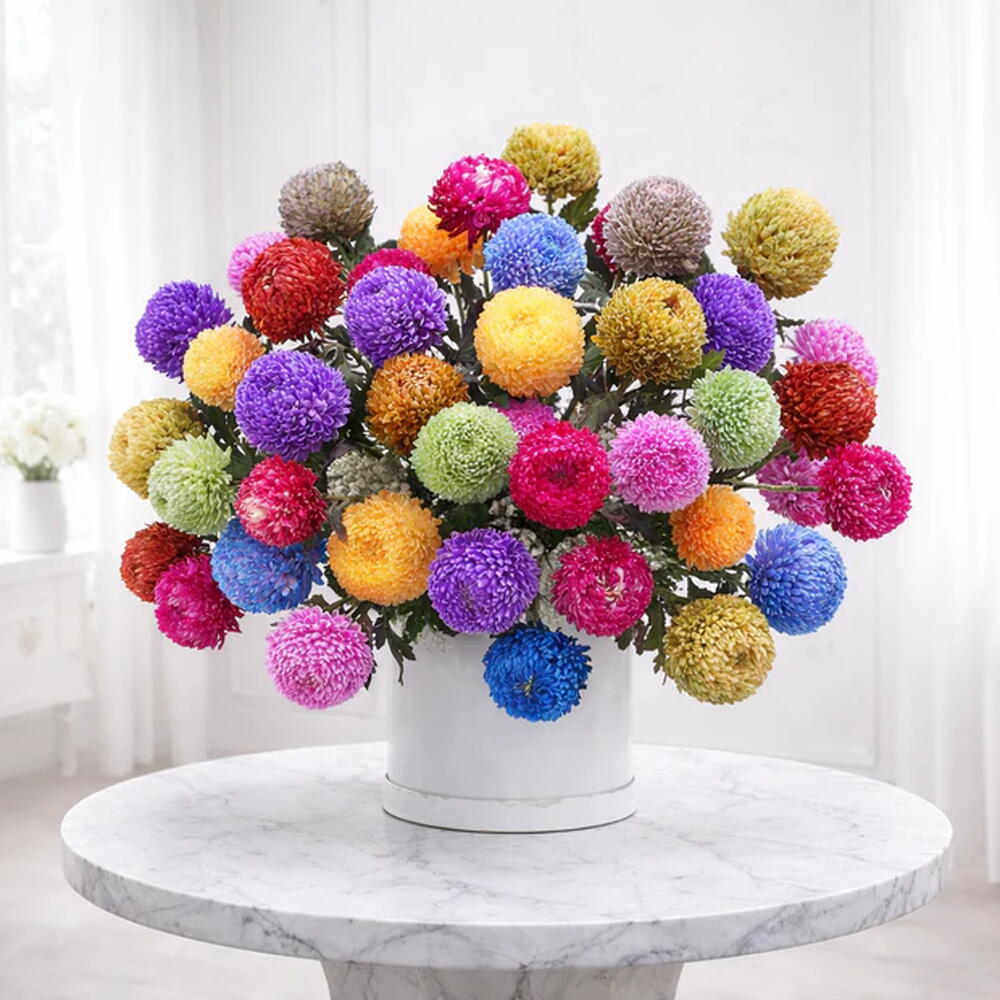 Rainbow Bliss Bouquet is a joyful celebration of colour, energy, and happiness. Designed with a striking mix of vibrant, globe-shaped blooms in radiant shades, this bouquet instantly lifts the mood and makes a bold statement. Perfect for birthdays, congratulations, celebrations, or simply to surprise someone who loves colour and creativity, this arrangement is handcrafted to feel playful yet refined. Its full, rounded silhouette and rich palette make it a standout gift that brightens any room and leaves a lasting impression. Carefully arranged and delivered fresh, Rainbow Bliss Bouquet is ideal for anyone looking to send something unique, cheerful, and unforgettable in Dubai.