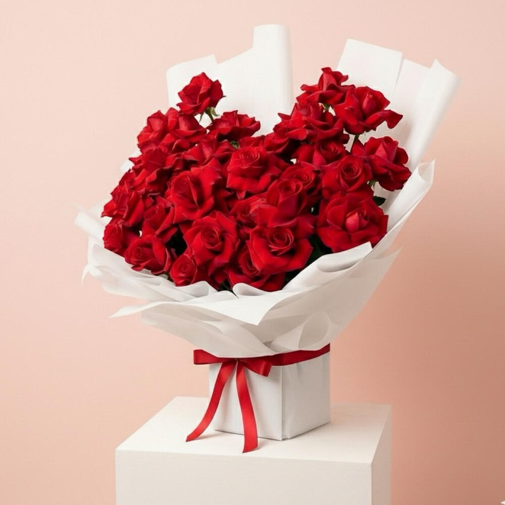 Red Rose 55 — The Romance Bouquet Luxury 55 Red Roses Bouquet | Elegant Valentine Romantic Flower Arrangement Make a timeless romantic statement with Red Rose 55 — The Romance Bouquet, a luxurious arrangement of 55 premium red roses, beautifully hand-arranged to create a full, lush, and elegant presentation that speaks the language of love. Each rose is carefully selected for its rich red hue, velvety petals, and naturally full bloom appearance, symbolizing passion, devotion, and deep emotional connection. Designed by expert florists, this bouquet offers a perfectly balanced look — grand yet refined — making it ideal for meaningful romantic moments. Wrapped in premium elegant wrapping and finished with a satin ribbon, this bouquet is perfect for Valentine’s Day, anniversaries, proposals, romantic surprises, birthdays, and special celebrations. Whether you’re expressing heartfelt emotions or planning a memorable gesture, 55 red roses convey love that is confident, passionate, and sincere. Our florists follow professional hydration and handling techniques to ensure long-lasting freshness and visual impact upon delivery. This bouquet is ideal for romantic dinners, hotel surprises, or gifting someone who appreciates classic luxury. ✨ Why choose Red Rose 55 — The Romance Bouquet? • 55 premium red roses with rich color and fullness • Luxurious, elegant presentation • Hand-arranged by professional florists • Long-lasting freshness with expert care • Perfect for Valentine’s Day and romantic occasions 🎁 Customization Available: Add chocolates, heart balloons, or a personalized message card to elevate your gift. If you’re searching for a 55 red rose bouquet, luxury red roses for Valentine’s Day, or a romantic flower delivery, Red Rose 55 — The Romance Bouquet is a timeless choice that never goes out of style.