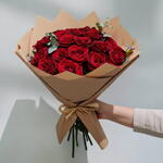 Rustic Romance Bouquet | 21 Red Roses in Kraft Paper | Passionate Flowers Dubai