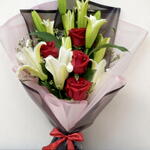 This stunning bouquet captures the essence of romance and sophistication. The rich red roses paired with elegant white lilies create a timeless harmony that speaks of love and admiration. Perfect for special occasions or just to brighten someone’s day. To ensure lasting freshness, place the bouquet in cool water, changing it daily. Trim the stems every 2–3 days at an angle and remove any leaves submerged in water. Keep the flowers away from direct sunlight, heat sources, and drafts to prolong their beauty.