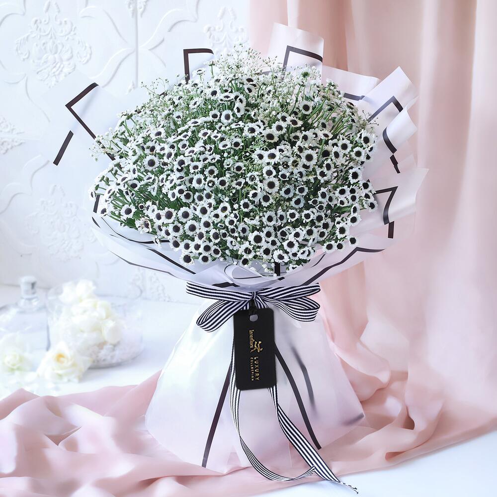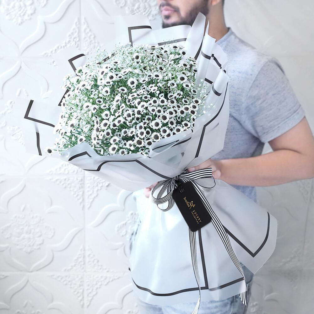 While black marks sophistication, white embodies purity. And when they coalesce, it creates a powerful aura that accentuates an optimistic vision. Inspired by this, heres presenting an assortment of gypso and santini stems, that are sure to add unfiltered positivity to your loved ones special day.