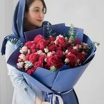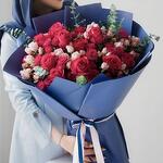 Red rose - 10 pcs red spray rose - 20 pcs eucalyptus leaves - 10 pcs soft pink spray roses - 51 pcs